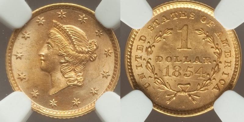 1854 GOLD DOLLAR (type 1) – NGC certified MS65