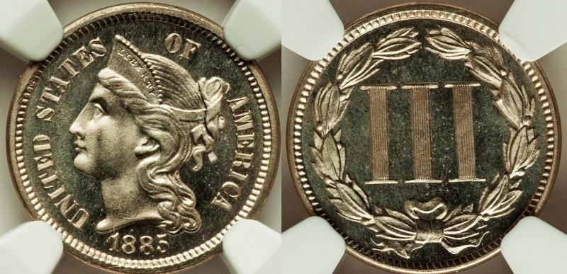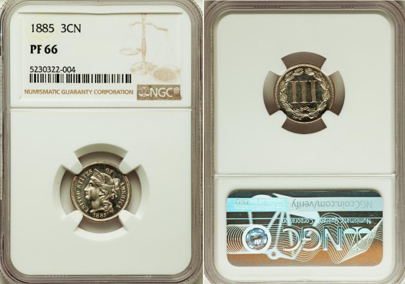 1885 THREE CENT NICKEL –  NGC certified PF66