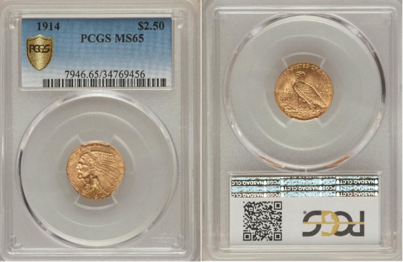 1914 $2.50 INDIAN  – PCGS certified MS65