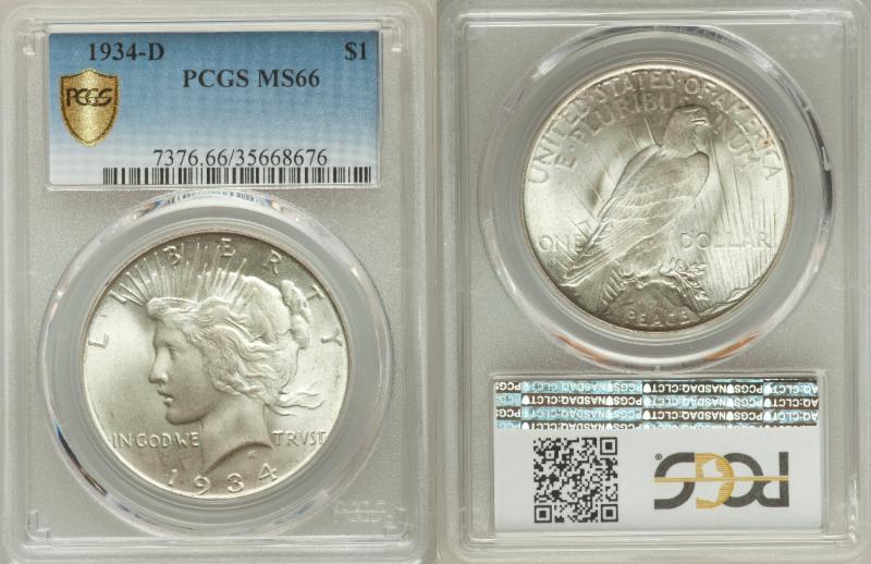 1934-D PEACE DOLLAR – PCGS certified MS66