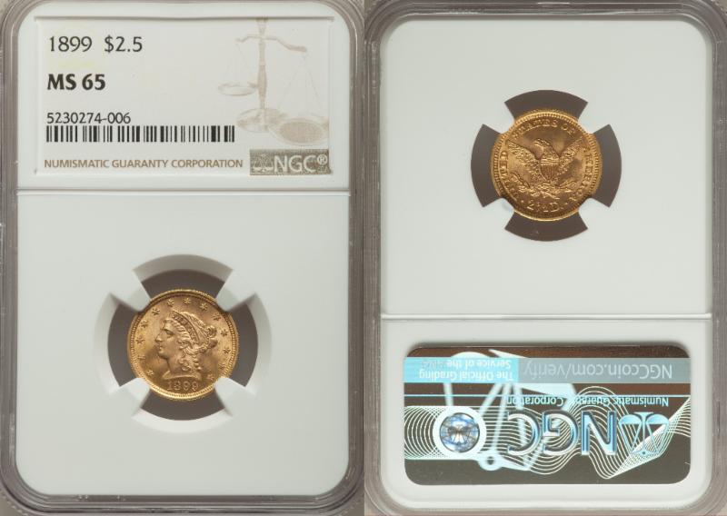 1899 $2.50 LIBERTY HEAD – certified MS65 by NGC