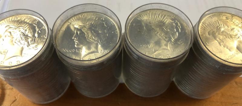 As mentioned, we have a precious few rolls of sparkling BU Peace Dollars from 1923.